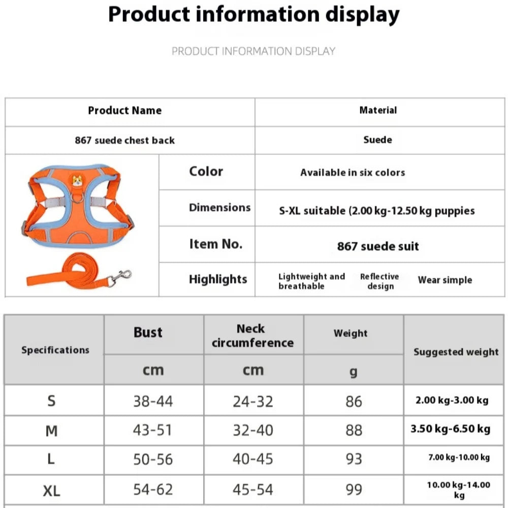 Reflective Dog Cat Harness Vest With Leash Breathable Mesh Padding