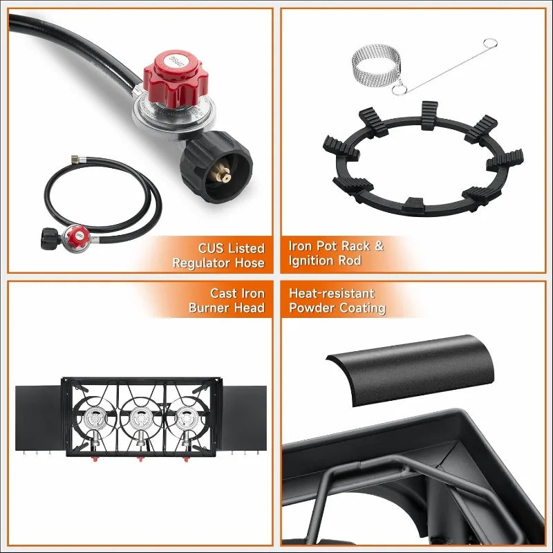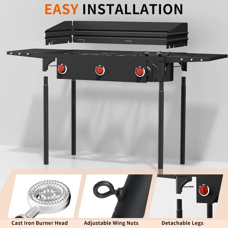 - You get three burners for multitasking, with a built-in ignition for quick starts without hunting for matches.